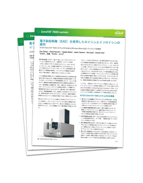 新技術によるアミノ酸配列評価の事例資料(アスパラギン酸/イソアスパラギン酸、ロイシン/イソロイシンの識別)をご用意いたしました。