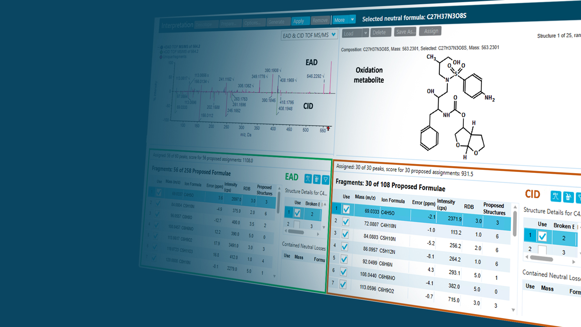 電子励起解離(EAD)と豊富なライブラリを備えたMSおよびMS/MSを基盤とするMolecule Profiler ソフトウェアは、様々な分子の構造を解明するための高精度で柔軟なワークフローを提供します。