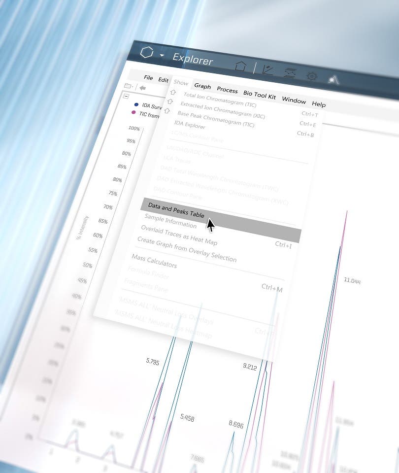 Biologics Explorer ソフトウェアは、最新の取得技術を活用し、実績あるパフォーマンスに基づいて構築されています。タンパク質バイオ医薬品の十分な特性解析において、情報豊富なワークフローを提供します。