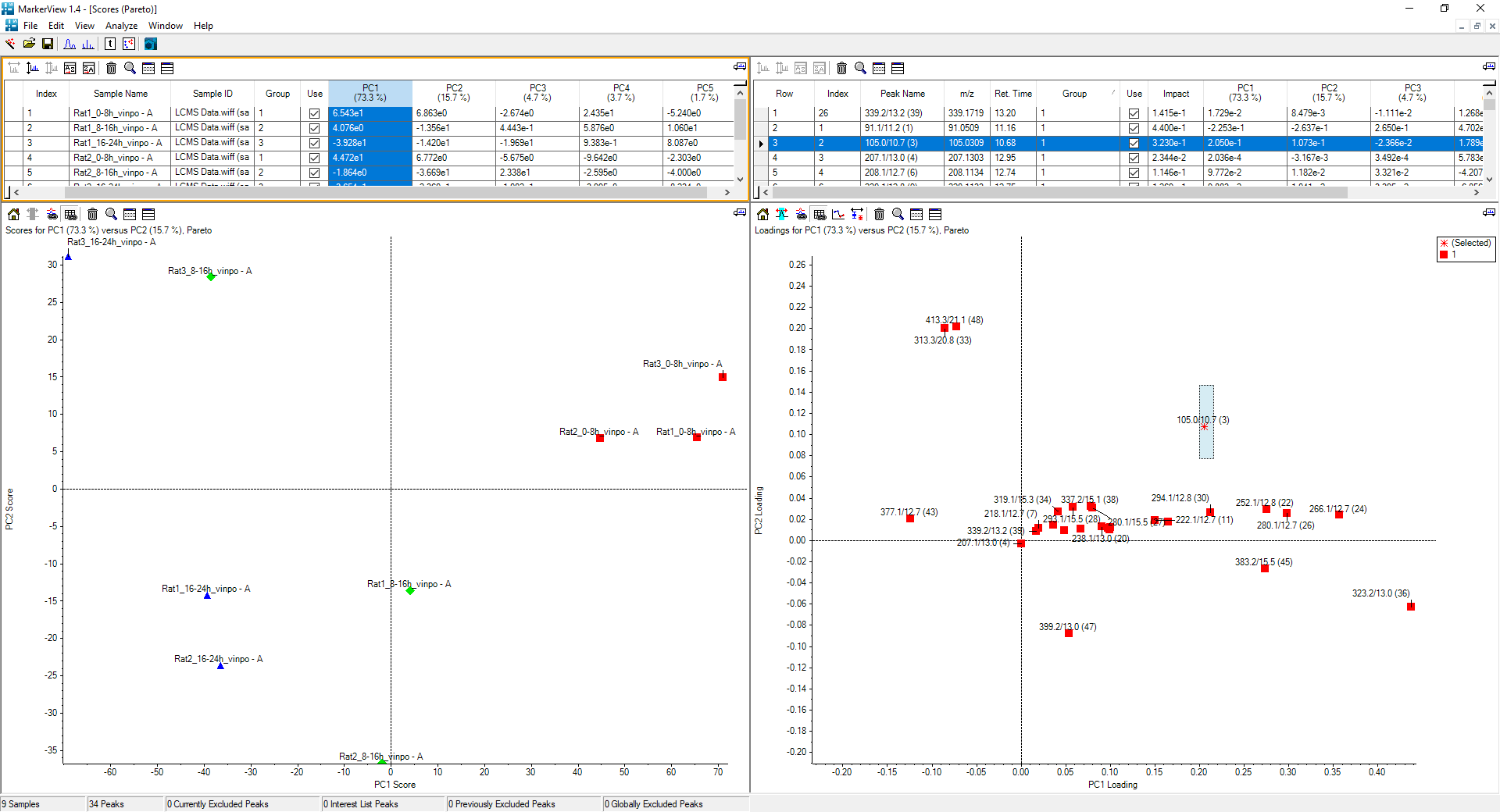 サンプルグループに基づいてデータを視覚化し、統計を適用してマススペクトル データ内の傾向に関する貴重な洞察を得たいと考えている科学者向けに設計されたデータ視覚化ツールです。MarkerView は、SCIEX ユーザーが生データに直接接続して統計的相関を探索できるという点でユニークです。これにより、有意義な関係を迅速に見つけることができます。特に、メタボロミクス、リピドミクス、プロテオミクス、食品の真正性や水質検査に役立ちます。