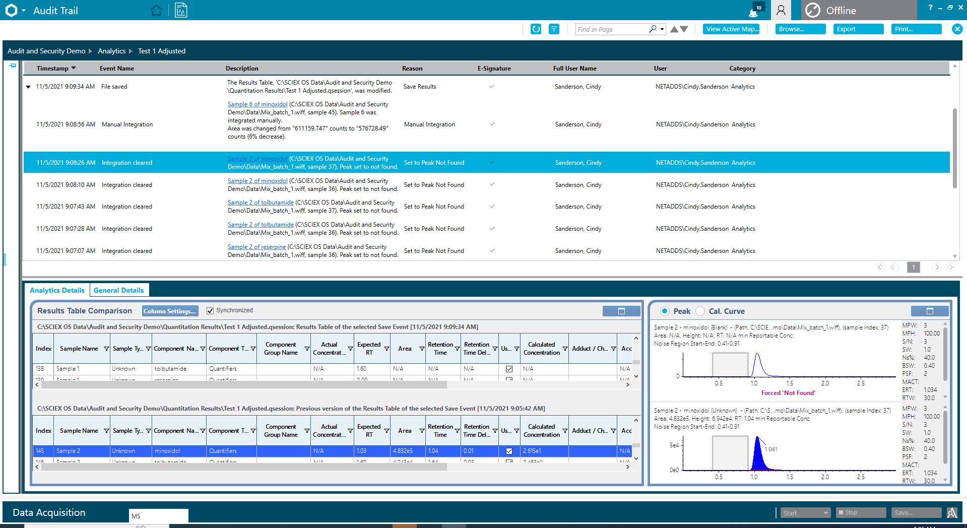 コンプライアンスに準拠した日常的な分析から柔軟性が求められる研究ワークフローまで、直感的な監査証跡ワークスペースは完全なトレーサビリティとアカウンタビリティを保証します。データインテグリティ機能が組み込まれており、ラボのコンプライアンスやデータ セキュリティ要件に合わせて各機能をカスタマイズできます。