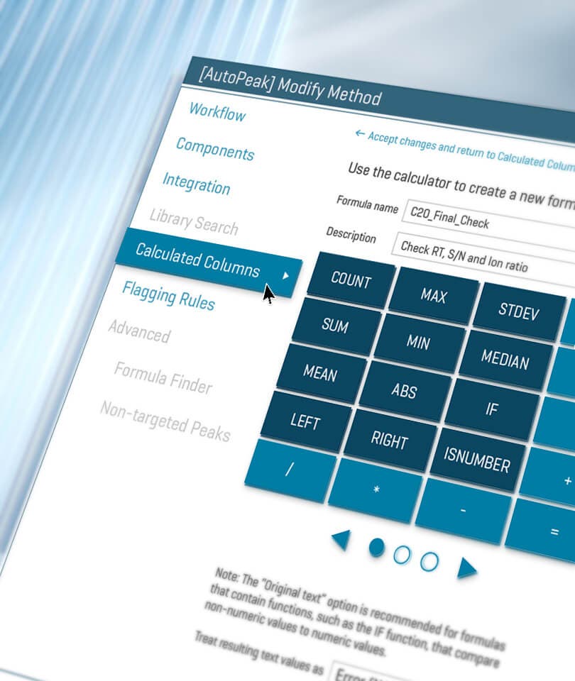 SCIEX OS ソフトウェアには、分析クエリに対して「IF」ステートメントをサポートしています。「IF」ステートメント内で計算を実行する機能があります。結果が数値の場合、フラグ付けルールに「IF」ステートメントを組み込むことができます。実行したいデータ分析の一部は複雑な場合があるので、クエリの式のサイズに制限はありません。ネストされた「IF」ステートメントもサポートされており、.frml ファイル形式にパッケージ化して共有できます。